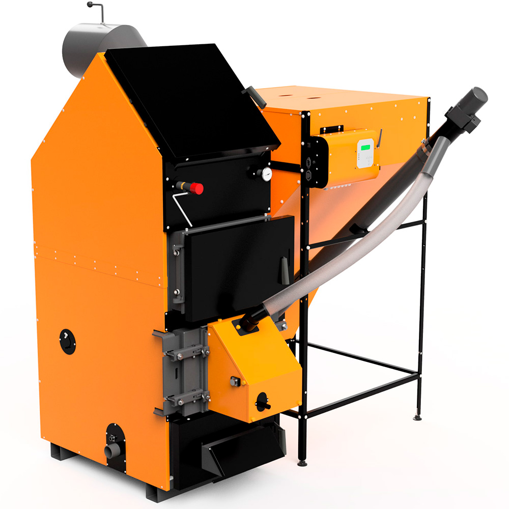 Комбинированные котлы созданы, чтобы сделать автоматизированным и современным отопление твердым топливом. Котлы применимы для отопления любых помещений – жилых, коммунальных, производственных и складских в тех регионах, где не проведены газовые магистрали. От обычных дровяных котлов комбинированные отличаются высокой степенью автоматизации работы, универсальностью и использованием пеллет – энергоемкого топлива, образующего минимум золы и дымовых газов. Комбинированные котлы одинаково ориентированы на сжигание пеллет, дров и других видов твердого топлива. Котлы «Общемаш» допускают установку различных горелок, в том числе газовых и дизельных.
